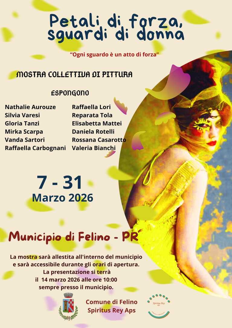 - dal 7 al 31 marzo in municipio la mostra di pittura "Petali di forza e sguardi di donna", a cura dell'associazione Spiritus Rey Aps di Medesano