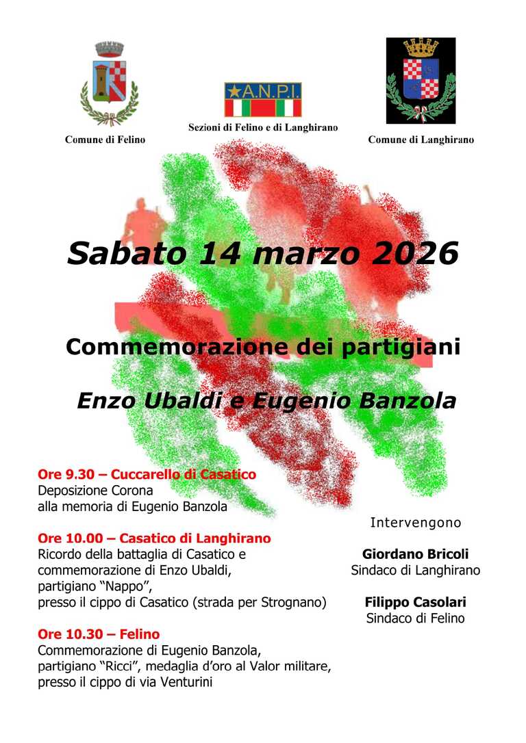 Alla commemorazione interverranno il Sindaco di Felino Filippo Casolari e il Sindaco di Langhirano Giordano Bricoli.